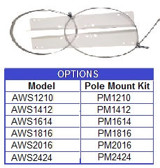Pole mount kit fits enclosure side that will be mounted perpendicular to pole and comes with top and bottom flanges and mounting screws.